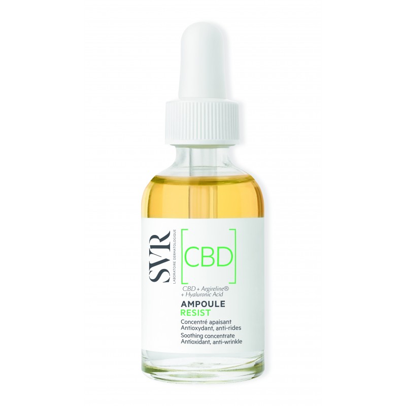 Ο [CBD] Ampoule Resist της SVR είναι αντιρυτιδικός και καταπραϋντικός ορός προσώπου με καθαρή CBD. Ο [CBD] Ampoule Resist Ενισχύει την επιδερμίδα σας. Αυτός ο διφασικός ορός διορθώνει τις ενοχλήσεις και μειώνει την ερυθρότητα σε ευαίσθητο και ερεθισμένο δέρμα. Είναι εμπλουτισμένος με εξαιρετικά καθαρή CBD, πράγμα που τον κανει να προστατεύει από το οξειδωτικό στρες, ενισχύοντας τη φυσική άμυνα της επιδερμίδας. Μέρα με τη μέρα, το δέρμα γίνεται πιο ανθεκτικό, ομοιόμορφο και λαμπερό, ενώ οι λεπτές γραμμές και ρυτίδες λειαίνονται ορατά. Συσκευασία: αμπούλα με σταγονόμετρο 30ml.
