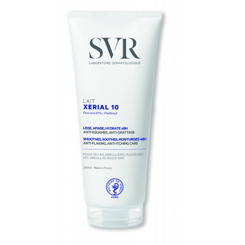 Η Xerial 10 Lait της SVR είναι γαλάκτωμα λείανσης με ουρία για 24ωρη ενηδάτωση με ήπια κερατολυτική δράση. Το γαλάκτωμα Xerial 10 Lait είναι ο καλύτερος σύμμαχός σας για να εξαλείψετε τα λέπια, την τραχύτητα και τη δυσφορία. Η πατενταρισμένη τεχνολογία του, περιέχει 10% καθαρή ουρία χάρη στην οποία, λειαίνει το δέρμα από την πρώτη χρήση. Η δροσερή υφή του σε συνδυασμό με την πανθενόλη καταπραυνει την αίσθηση τραβήγματος και κνησμού για να σας χαρίσει έντονα ενυδατωμένο δέρμα για 48 ώρες. Το γαλάκτωμα είναι πλούσιο σε βούτυρο καριτέ και λάδι καρύδα κι έτσι θρέφει και περιβάλλει το δέρμα σας απαλά χωρίς να κολλάει. Συσκευασία: σωληνάριο 200ml.