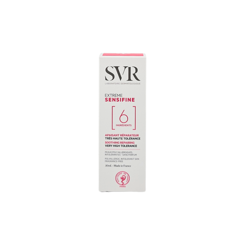Η SVR SENSIFINE EXTREME CREAM 30ML είναι μία εντατική καταπραϋντική κρέμα προσώπου, ειδικά σχεδιασμένη για υπερευαίσθητο, δυσανεκτικό και αντιδραστικό δέρμα. Προσφέρει άμεση ανακούφιση από αίσθημα καύσου, τσούξιμο και ερυθρότητα, ενώ ενισχύει τον επιδερμικό φραγμό. Minimal σύνθεση με πολύ περιορισμένο αριθμό συστατικών για μέγιστη ανοχή. Η κρέμα SVR SENSIFINE EXTREME CREAM 30ML περιέχει καταπραϋντικά και ενυδατικά στοιχεία όπως συμπλέγματα υψηλής ανοχής, ενυδατικά λιπίδια και μαλακτικούς παράγοντες, τα οποία ενισχύουν τον επιδερμικό φραγμό, μειώνουν τους ερεθισμούς και διατηρούν την επιδερμίδα απαλή και προστατευμένη. Με την χρήση της μειώνεται την εμφάνιση ερυθρότητας και ερεθισμών και καταπρα_νεται η επιδερμίδα. Η σύνθεσή της υψηλής ανοχής διατηρεί την επιδερμίδα ενυδατωμένη, απαλή και άνετη, προσφέροντας καθημερινή άνεση και λεία υφή ακόμη και σε δέρμα με έντονη ευαισθησία ή ξηρότητα. Είναι κατάλληλη για υπερευαίσθητο, αντιδραστικό ή ξηρό δέρμα που χρειάζεται εντατική φροντίδα. Προσφέρει καθημερινή καταπράυνση και άνεση, μειώνοντας ερυθρότητα και δυσφορία χωρίς ερεθισμούς. Συσκευασία: αντλία 30ml.