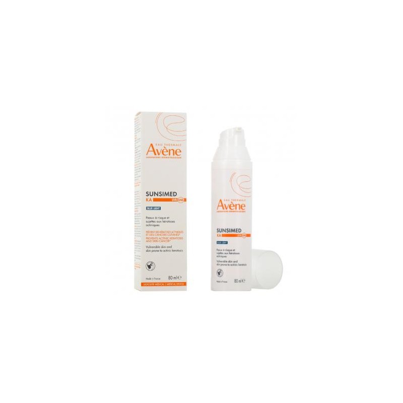Το Avene Sunsimed KA SPF50+ είναι ένα εξειδικευμένο ιατροτεχνολογικό αντηλιακό προϊόν πολύ υψηλής προστασίας που έχει σχεδιαστεί για άτομα με ευαίσθητο δέρμα ή δέρμα με τάση για ακτινική υπερκεράτωση. Η σύνθεσή του συμβάλλει στην προστασία του δέρματος από την υπεριώδη ακτινοβολία και στη μείωση του κινδύνου εμφάνισης προκαρκινικών δερματικών αλλοιώσεων που σχετίζονται με την έκθεση στον ήλιο. Η σύνθεση περιλαμβάνει το TriAsorB, ένα προηγμένο αντηλιακό φίλτρο που προστατεύει από UVB, UVA και μπλε φως, ενισχύοντας το εύρος φωτοπροστασίας. Επιπλέον, περιέχει Pro-Tocopheryl, ένα ισχυρό αντιοξειδωτικό που συμβάλλει στην προστασία των κυττάρων από τις ελεύθερες ρίζες, καθώς και υαλουρονικό οξύ που προσφέρει ενυδάτωση και συμβάλλει στη διατήρηση της άνεσης της επιδερμίδας. Η φόρμουλα του Avene Sunsimed KA 80 ml παρέχει πολύ υψηλή φωτοπροστασία SPF50+ έναντι των ακτίνων UVA και UVB, ενώ παράλληλα συμβάλλει στην προστασία του DNA των κυττάρων από τη φωτοπροκαλούμενη βλάβη. Εχει σχεδιαστεί για καθημερινή χρήση σε άτομα με υψηλό κίνδυνο φωτοβλάβης, βοηθώντας στην πρόληψη της εμφάνισης ακτινικής υπερκεράτωσης και άλλων δερματικών αλλοιώσεων που προκαλούνται από τη χρόνια έκθεση στον ήλιο. Κατάλληλο για ευαίσθητο δέρμα και δέρμα με τάση για ακτινική υπερκεράτωση, καθώς και για άτομα με υψηλό κίνδυνο φωτοβλάβης από την ηλιακή ακτινοβολία. Ιδανικό για καθημερινή φωτοπροστασία σε πρόσωπο και εκτεθειμένες περιοχές του σώματος. Συσκευασία: φιαλίδιο με αντλία 80 ml.