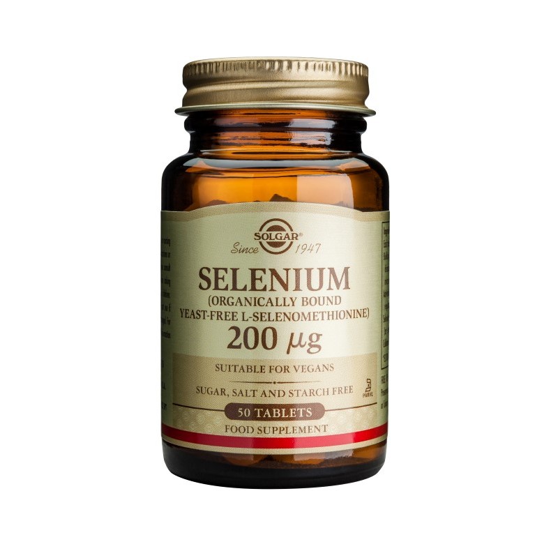 Το συμπλήρωμα διατροφής Selenium της Solgar παρέχει οργανική μορφή σεληνίου χωρίς μαγιά. Είναι βασικό για την ομαλή ανάπτυξη και μπορεί να προστατεύσει θετικά από την ανάπτυξη καρδιακών και άλλων εκφυλιστικών παθήσεων. Χρήσιμο για την αποτοξίνωση από τοξικά μέταλλα, όπως υδράργυρος και κάδμιο. Το σελήνιο ουδετεροποιεί τις ελεύθερες ρίζες πριν αυτές προλάβουν να καταστρέψουν ιστούς του οργανισμού. Συσκευασία: 50 ταμπλέτες των 200mg σε γυάλινο περιέκτη.